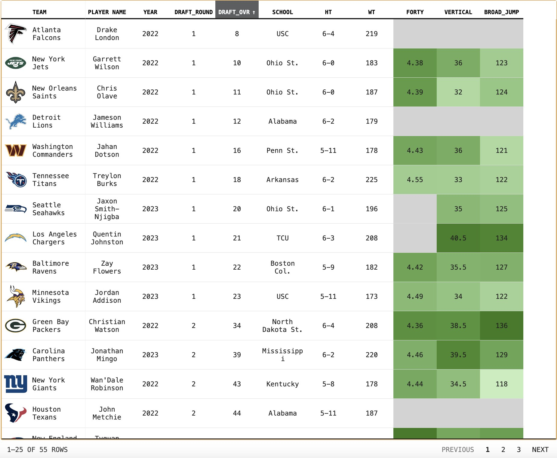 NFL Combine Table